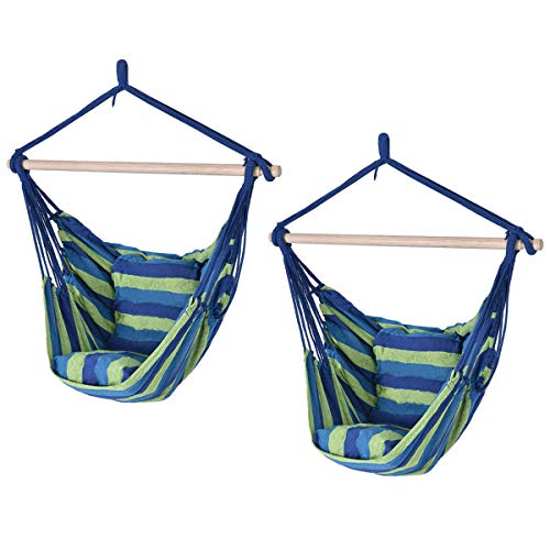- Specifications: Color: Blue and Green. Material:Cotton fabric and wood. Size of round wood: 1-1/4"(Dia) x 40"(L)(3.2x100cm). Overall dimension: 47"x40"(LXW). Size of pillow: 20"x20"x3"(LXWXH). Weight capacity: 260lbs.
