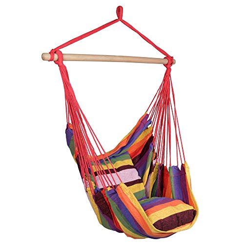 Why don't you stop here and pay attention to our beautiful rainbow hammock chair. It is in delicate design integrating top-grade cotton