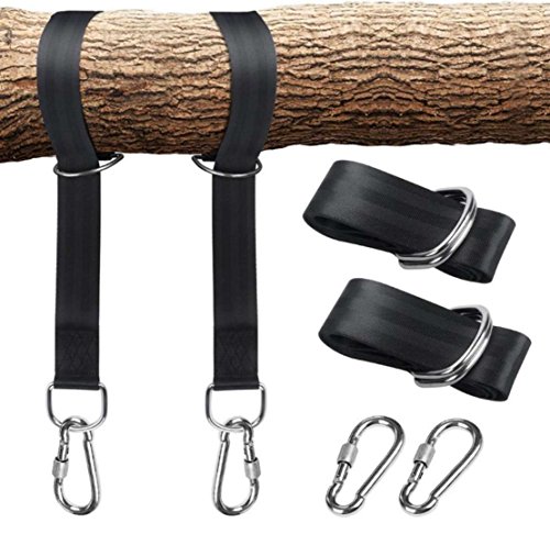 - ✔ SAFETY: Designed for hanging a swing without harming the tree.To prevent the straps from coming off while swinging, we designed our carabiners to include a heavy duty screw lock. Each strap has extra stitching on the metal ring fabric loops to provide sturdy and reliable attachment without tearing apart at the seams.0.23 inch -rings and 0.31 inch carabiners thickness with furling increase reliability in 30%.