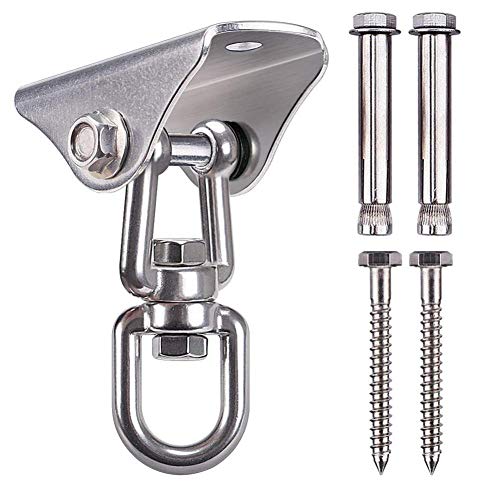 360 degree rotation free swing, easy installation, 304 stainless steel, 100% permanent rust-proof. Indoor and outdoor use: suitable for hammock rocking chair, porch swing, rocking chair, sandbag, or overhead installation of any other heavy objects, including gymnastic rings suspended ceiling. Suitable for children and adults, designed for 1000-pound load bearing, safe and reliable