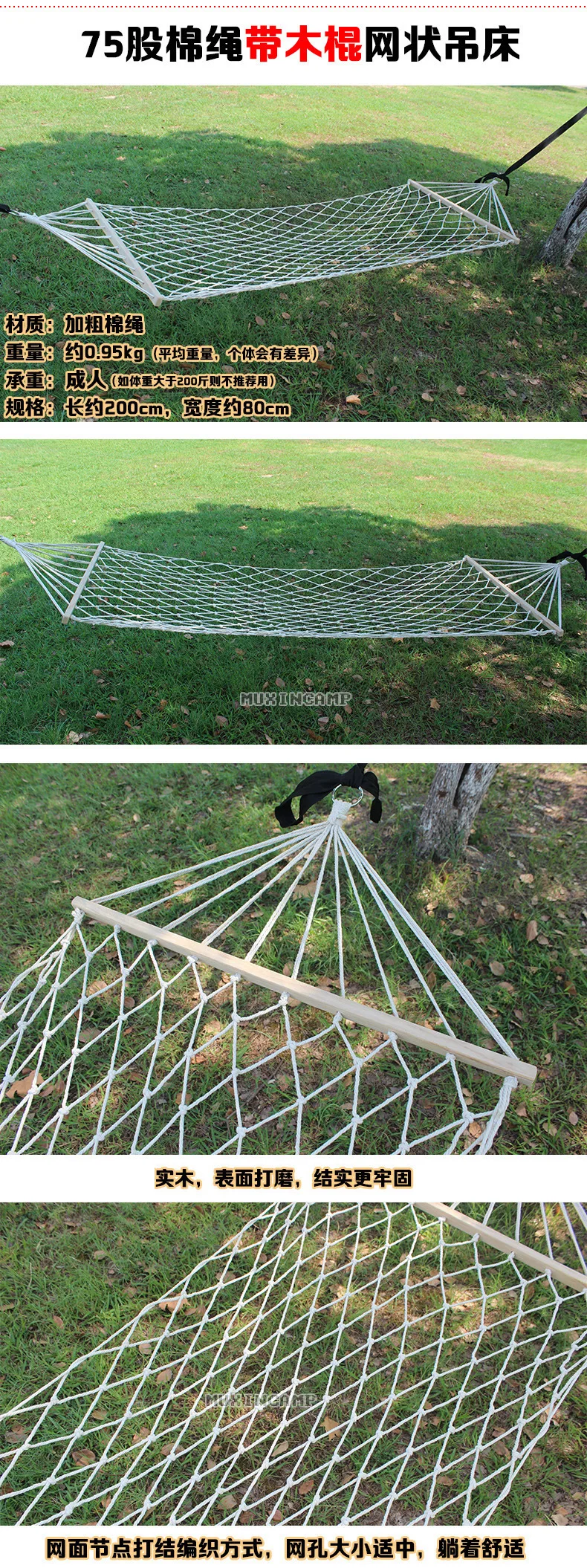 Hammock surface material cotton rope Maximum load-bearing 120(kg) Weight 1000(g)