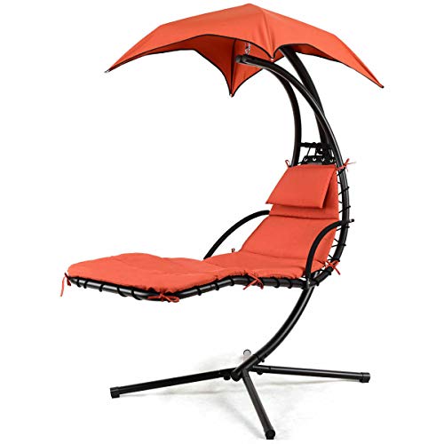 This modern hanging chaise lounge chair is the most perfect tool for you to rest and relax in your garden ,patio or yard. Its unique design with heavy-duty powder-coated metal frame , thick foam-filled polyester cushion and removable canopy umbrella provide you extreme leisure experience in comfort. Moreover, its modern & innovative appearance make it also be a great addition to your outside living space. It's comfortable, it's beautiful , high quality with best price. It will be your excellent choice to buy.