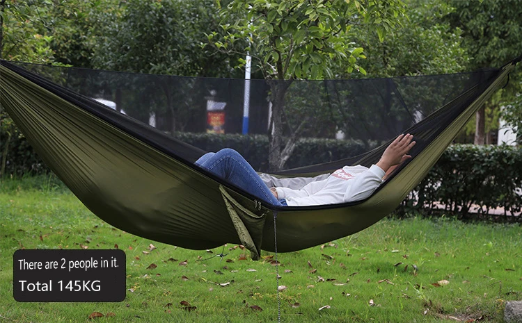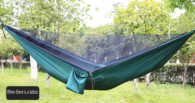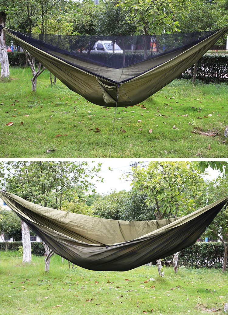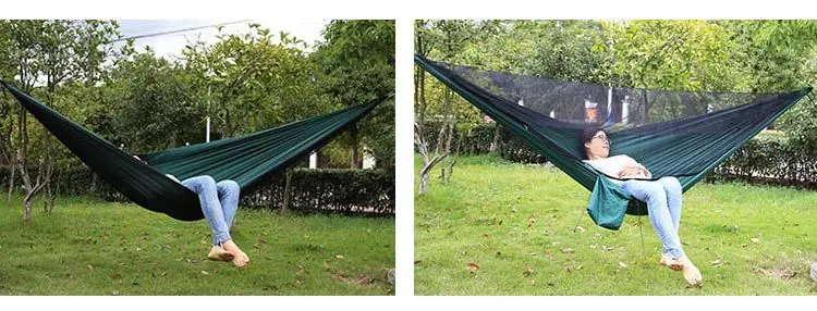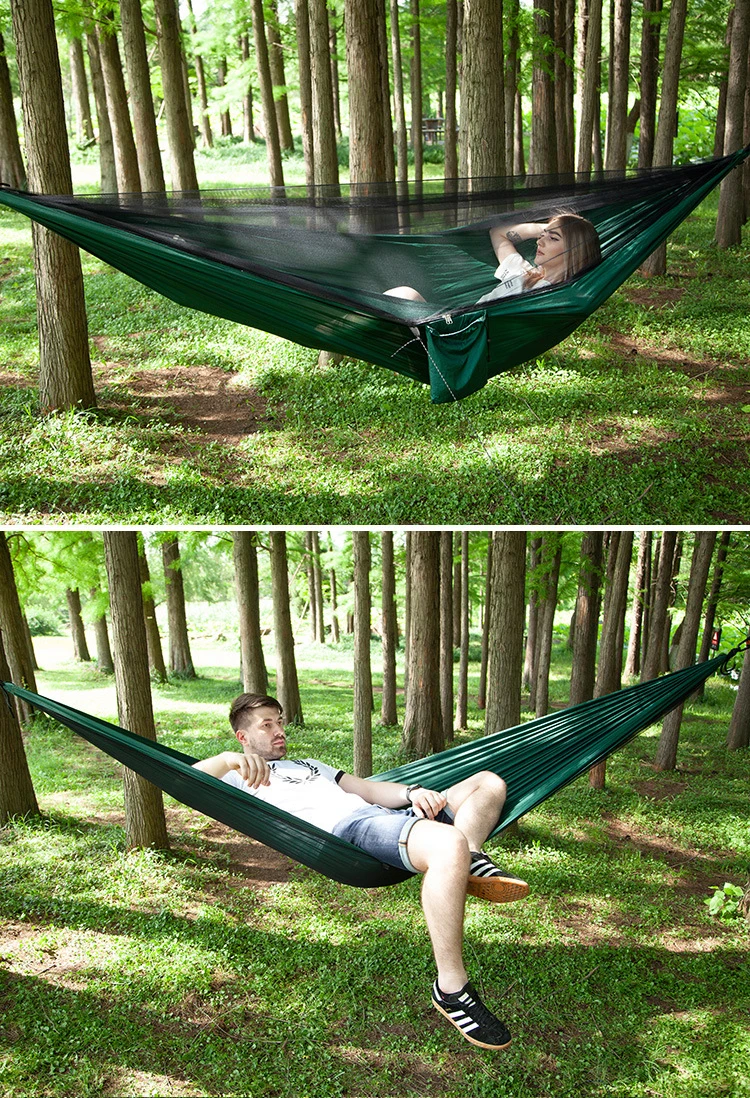 Portable Hammock singles/Double Person Camping Survival Garden Swing Hunting Hanging Sleeping Chair Travel Furniture Parachute Hammocks with Mosquito Net