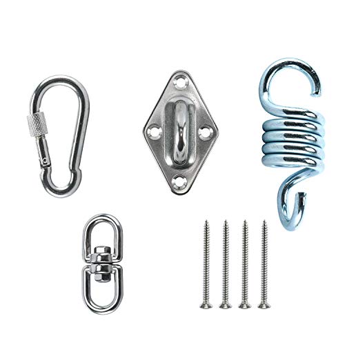 - Hook Mount, Spring, and Snap Swivel for mounting hammock chairs and other hanging accessories like punching bags, hanging plants, etc..