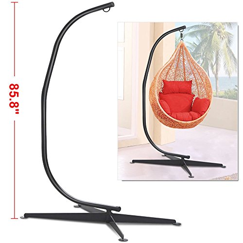 Description: Brand new and stylish "C" hammock stand. Heavy-duty stand. Constructed Of sturdy tubular steel You can enjoy 360 degrees swing. Fits with most air chairs Rust resistant finish, powder coated for anti-rust in different environment. X base is 136 x 135cm/53.5x 53.1inch(Save your space) Good stability and great balance Ideal for all indoor and outdoor surfaces Easy and quick to assemble. Dimensions: 2" diameter tube Approx 7' total tall Weight capacity: 150kg/330 Lb Stand Weighs:24kg/53 lb Material:steel Please note: Hammock chair not included. Color: Black Packing List: 1 x heavy-duty hammock stand