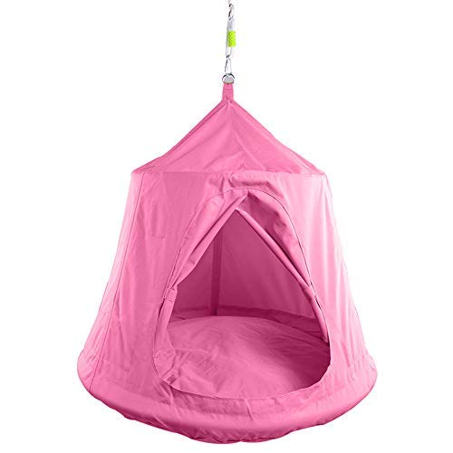 The hanging tent by KINSPORY, is perfect for your kids. Whether you put it in their bedroom, hang it from a swing frame, or take it with you on a day out, your kids will love it. You can imagine if you had one of these when you were their age. What a cool place to hang out; they'll never be out of it. It can accommodate three children and only cover an area of 2 square metre.