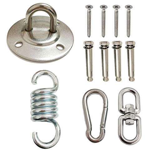 - Hook Mount, Spring, and Swivel for mounting hammock chairs and other hanging accessories like punching bags, hanging plants, etc.