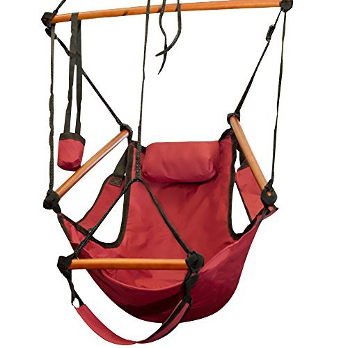 This is the second sky chair we’ve had. This one is nice because of the cup holder. There is a “pillow”, however we had to slice it open and stuff it some more and restitch it. Our older model didn’t even have a pillow. My husband has no trouble falling asleep in this floating chair