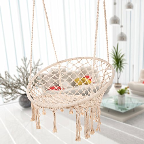 - Popular Addition to Home: designed with mesh and tassels, the hammock chair follows a distinct Bohemian style, makes your space charming. 100% handmade durable cotton makes feel comfortable.