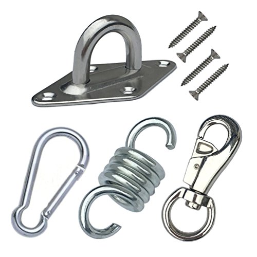- The hammock hanger kit includes 1 Pcs spring, 1 Pcs swivel hook, 1 Pcs snap hook, 1 Pcs ceiling mount with 4 stainless steel screws; Specific dimensions look for picture 3