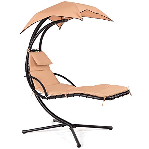- Perfect Hanging Chaise Lounge Chair: It is the most perfect tool for you to rest and relax in your garden ,patio or yard. It comes complete with an attached canopy which provides shade from the sun and arm rests for comfort and support.