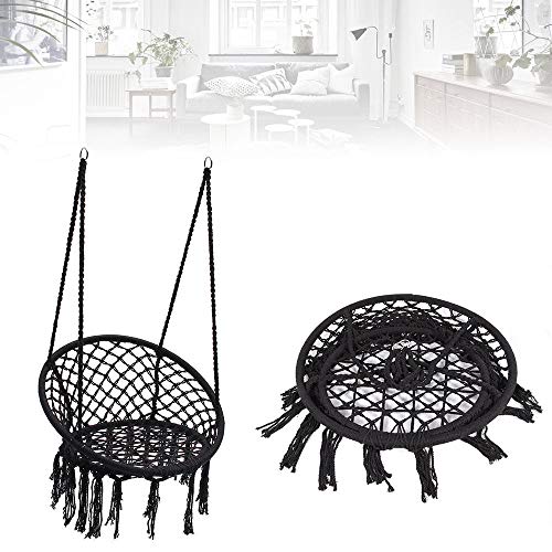 - STURDY & STYLISH DESIGN - Handmade bohemian chic hammock style swing brings style and unique touch to any home. The rope and swing design features macrame net chair pattern with fringe tassels .Made of 100% handmade cotton. Hand wash. Protect from outdoor elements. 260 pound weight capacity.